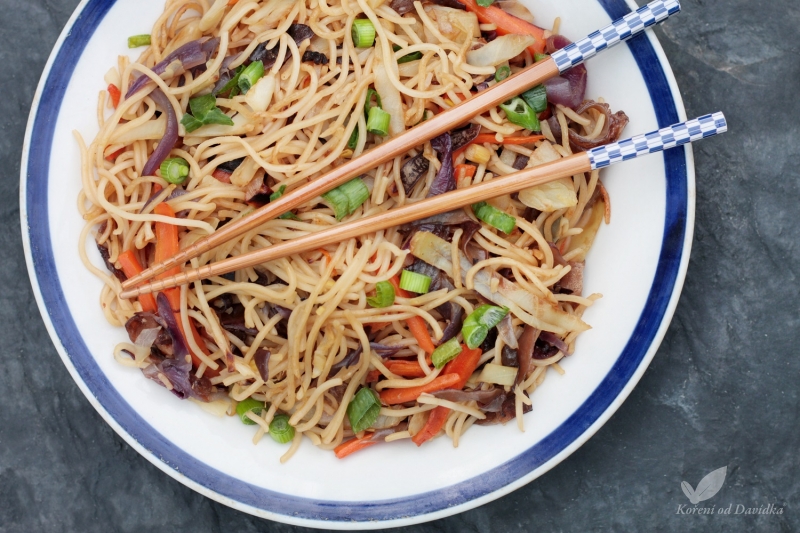 2Mrkva, bielu kapustu, červenú cibuľu, Judášove ucho a citrónovú trávu nakrájate na tenké pásiky a spoločne s cesnakom prudko opečte vo woku na oleji tak, aby zelenina zostala chrumkavá.