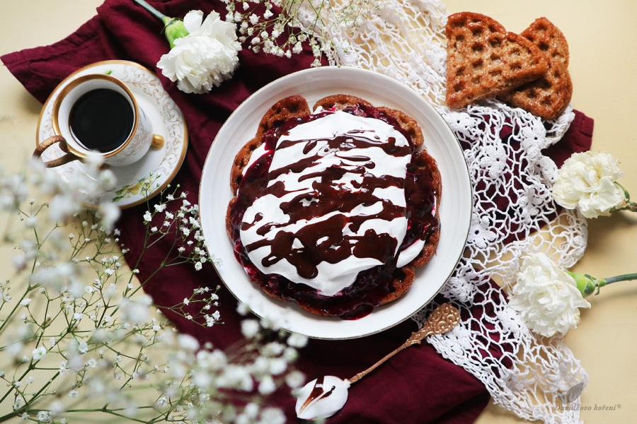 Bezlepkové vafle so šľahačkou a horúcim lesným ovocím