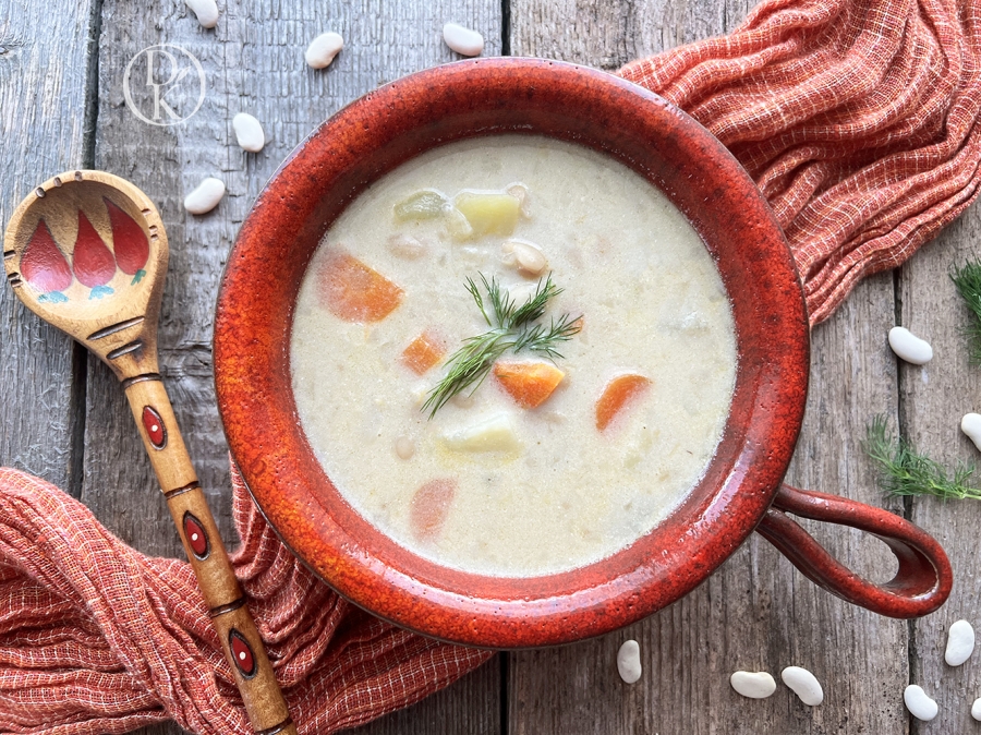 Biela fazuľová polievka so zemiakmi a kyslou smotanou