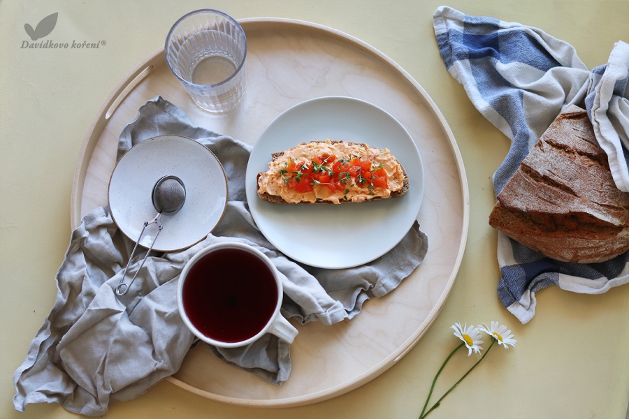 Hotovú nátierku servírujte na dobrom chlebíku alebo bagetkách s pečenou paprikou uloženou hore, prípadne aj s čerstvými bylinkami podľa chuti. Dobrú chuť.