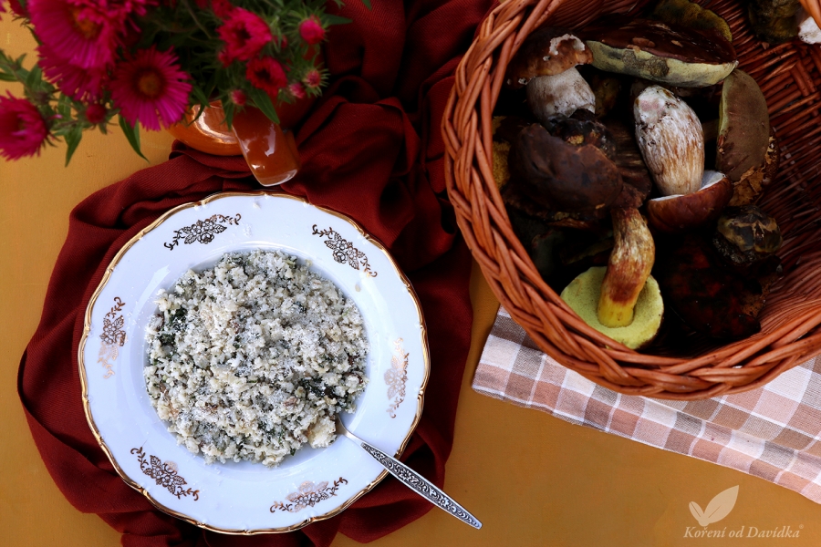 Hríbové rizoto so špenátom