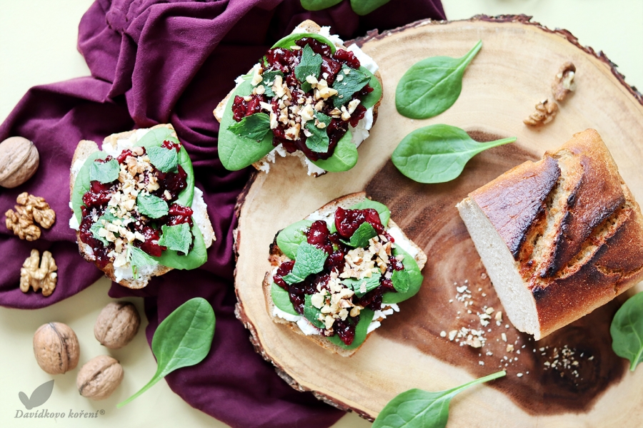 Obložený chlieb s kozím syrom a višňovým rozvarom