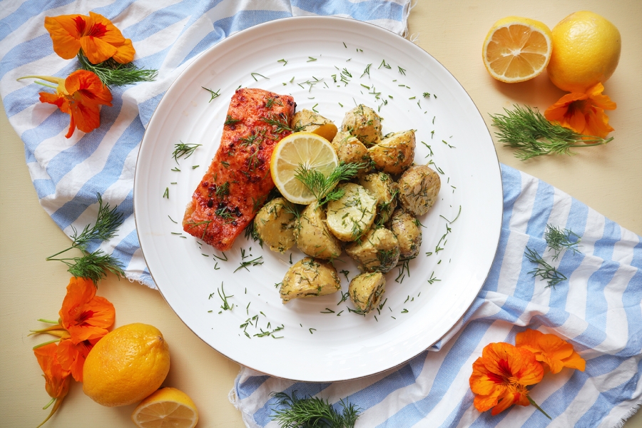 A predovšetkým, prichádza sezóna byliniek, všetko kvitne a vonia. Po zime, kedy sa cítim ako chodiaci zemiak v smotanovej omáčke, mám chuť na niečo ľahké, chrumkavé a zelené. V kuchyni si užívam bylinky, chrumkavú zeleninu a rýchle jedlá, ktoré sú plné chuti, ale nestoja ma pol dňa pri sporáku. Najradšej mám rýchlu hráškovú nátierku alebo Smashed potato šalát so šalátovými bylinkami.