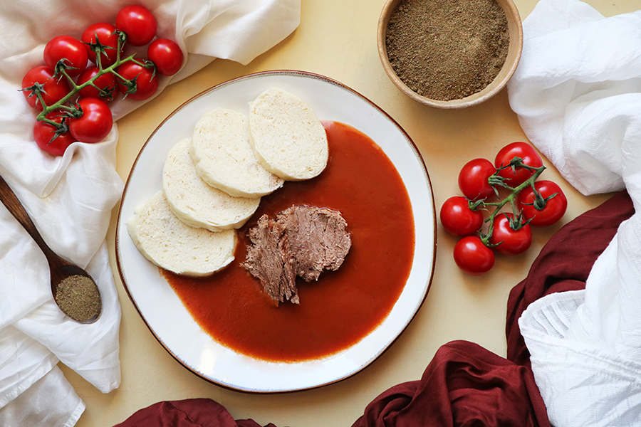 Podávanie – hovädzie mäso nakrájajte na plátky a podávajte s omáčkou a domácou kysnutou knedľou.