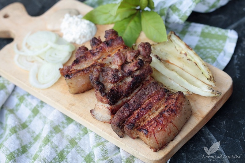 3Teraz môžete začať grilovať. V priebehu bôčik potierajte marinádou z korenia, piva a horčice.