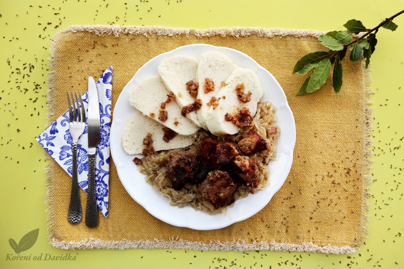 Moravský vrabec s moravskou kyslou kapustou a žemľovou knedľou