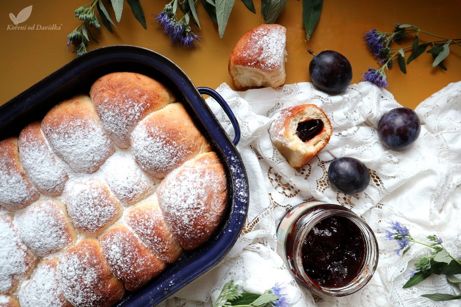 3Z cesta vyvaľkajte približne centimetrový plát a rozkrájajte ho na cca päťcentimetrové štvorce. Každý štvorec potrite lekvárom, a vytvarujte z nich buchty. Lekvár by nemal z cesta nikde vytekať. Pekáč vymažte hrubou vrstvou masla, naukladajte do neho buchty vedľa seba tak, aby bol spoj cesta na dne pekáča. Zároveň medzi nimi nechajte priestor, a nechajte ich ešte asi 1/2 hodinu kysnúť.