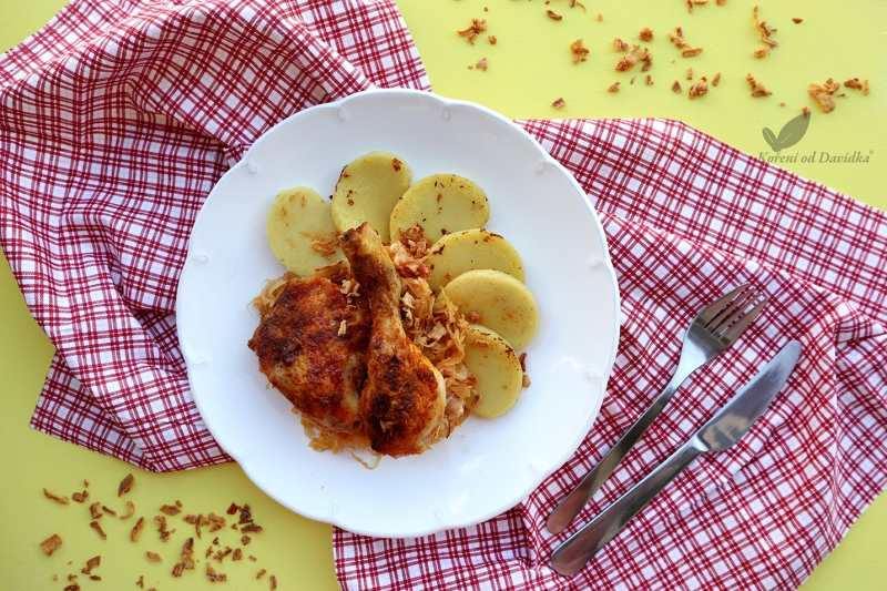 - Zlejte vodu z kyslej kapusty a ochutnajte ju. Ak je priveľmi kyslá, môžete ju prepláchnuť vodou. Kapustou vyložte pekáčik alebo zapekaciu misu.