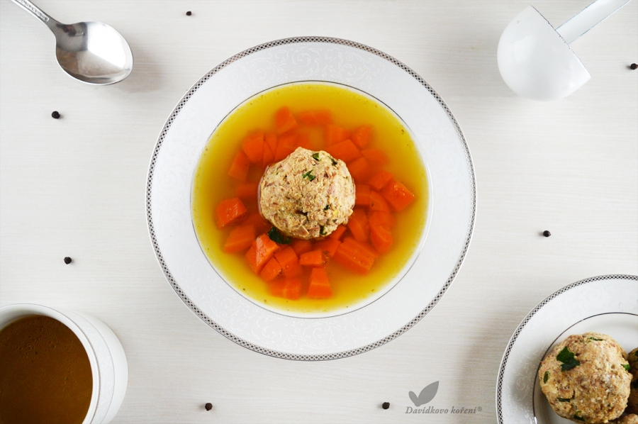 5Uvarené mäsové knedličky dajte do taniera k zelenine, zalejte vývarom, ozdobte čerstvou petržlenovou vňaťou.
