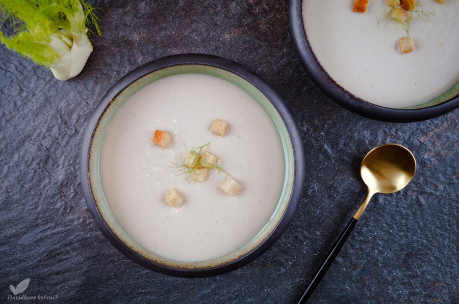 Petržlenovo-feniklový krém s kaprím mliečím a maslovými krutonmi