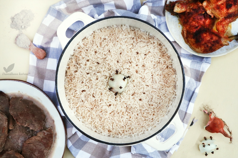 2. V rendlíku zahřejte olej, máslo a nasypejte na něj rýži. Pár minut restujte, přidejte koření RÝŽE BABKY GABKY, osolte a zalijte dvěma díly vody k rýži. Rýži přendejte do pekáče a pečte ve vyhřáte troubě na 180 °C. Když je rýže měkká, vypněte ji a nechte 10 minut odpočinout.