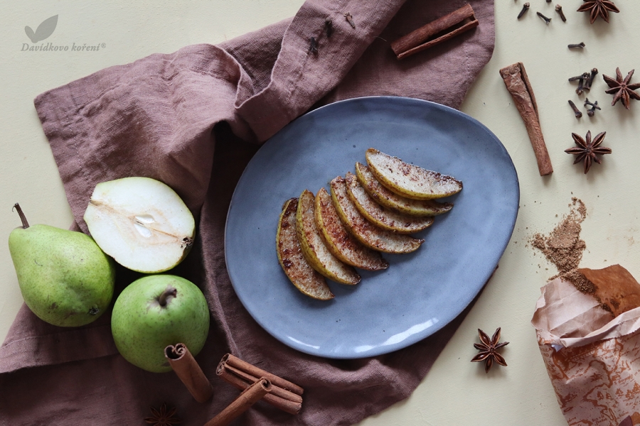 1Hrušku nakrájejte na 3 - 5 mm plátky.
