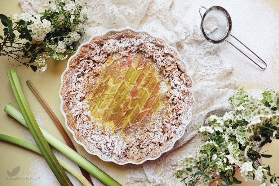 Slávnostný rebarborový koláč s karamelizovanými florentínskymi mandľami