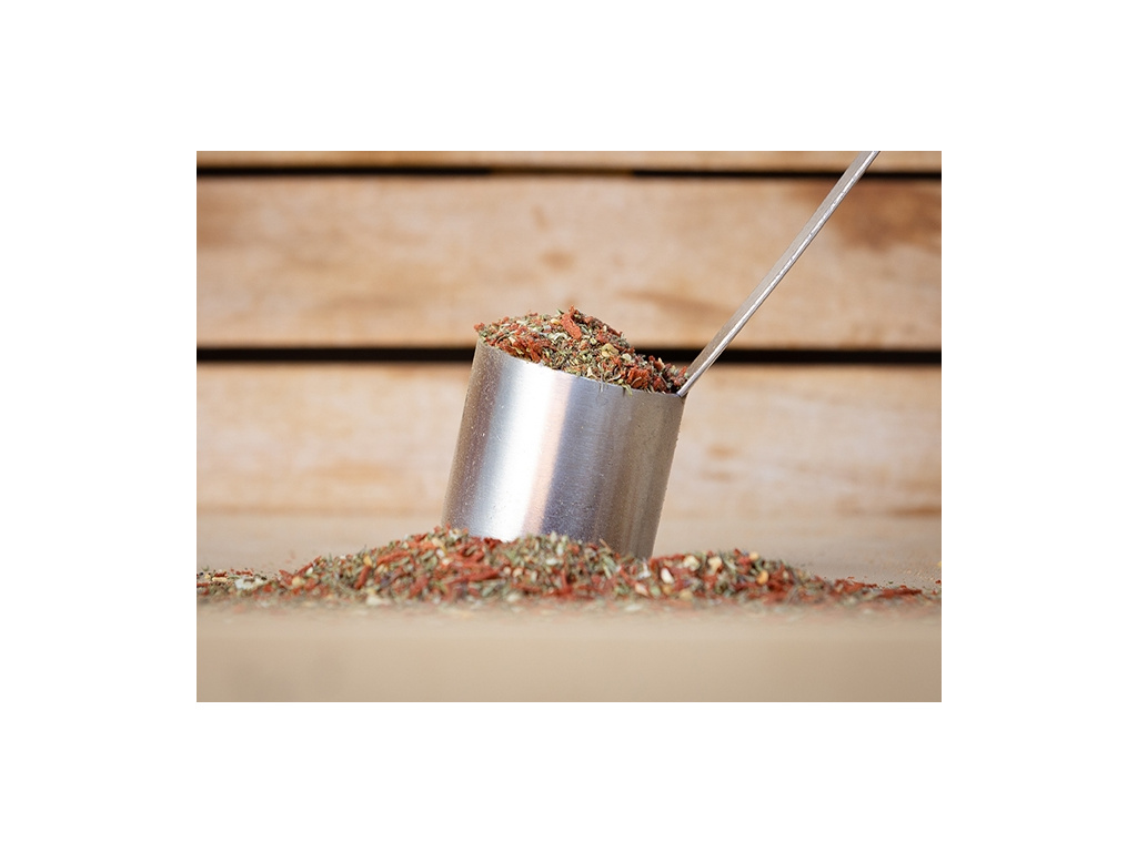 Zloženie: Paradajky, tymian, cesnak, rozmarín, majorán, cibuľa, čierne korenie, bobkový list.