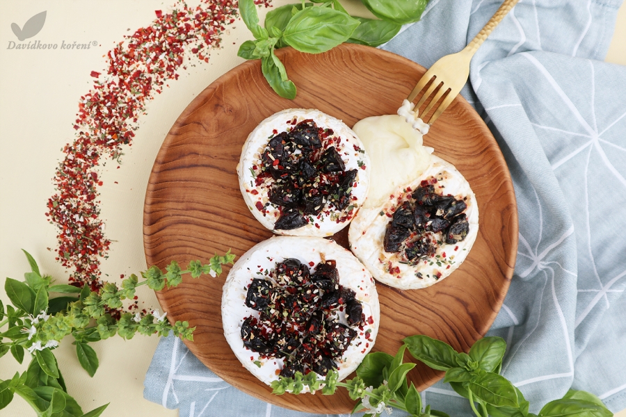 Grilovaný hermelín zapečený so smotanou, korením a sušenými slivkami