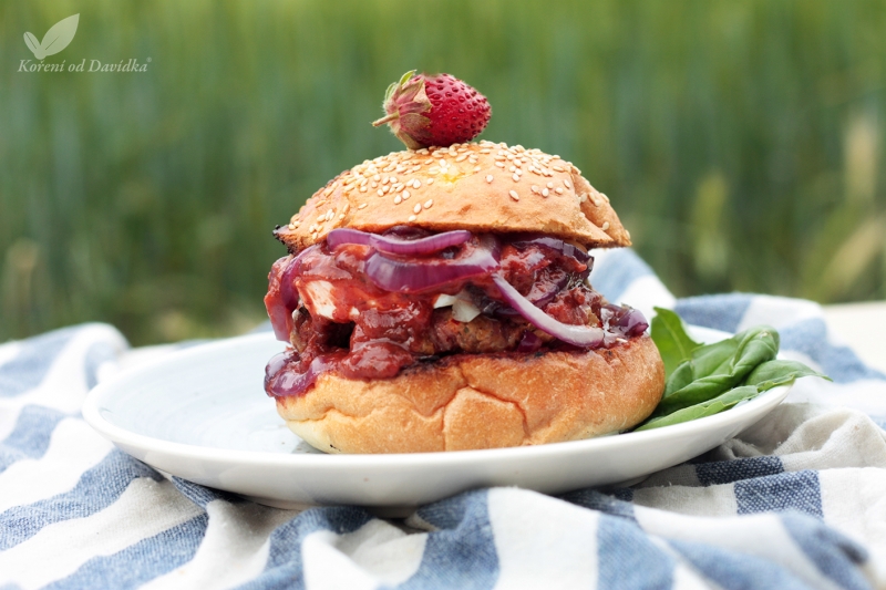 Morčací burger s hlivou a jahodovým kečupom