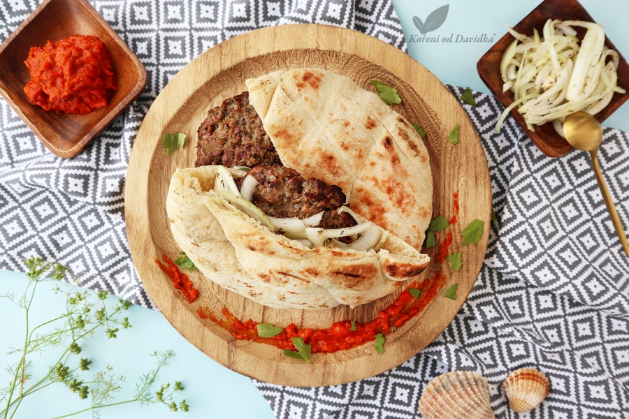 1Cibuľu nasekejte nadrobno, zmiešajte s mletým mäsom, korením, sódou bicarbónou a vodou. Dobre rukami premiešajte a dajte aspoň na 2 hodiny odpočinúť.