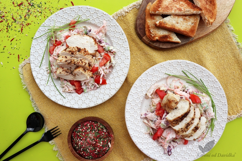 Zeleninový salát s grilovaným masem