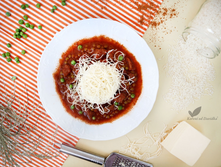 4Maso občas promíchejte a podlévejte vodou. Jakmile je maso měkké přidejte hrášek a ještě povařte, případně dochuťte.