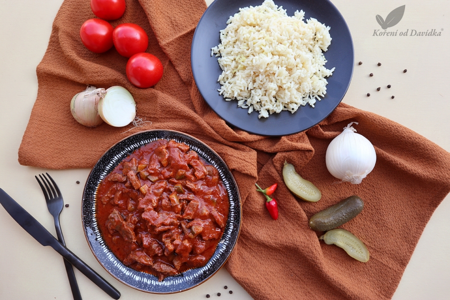 4Keď je mäso mäkké, pridajte nakrájané uhorky, soľ, VEGE RAJČÁTKA a odkryté nechajte pomaly zredukovať.