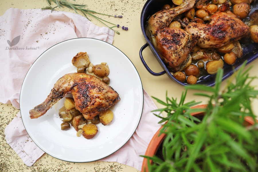 4Pečte cca hodinu dozlatova, aby měla stehna vypečenou kůrčičku.