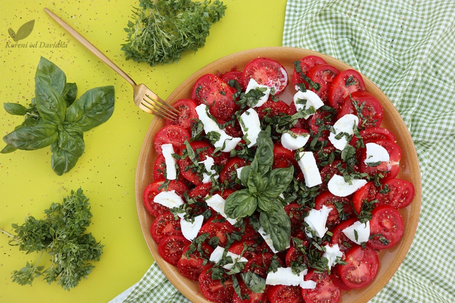 1Paradajky najskôr vychlaďte, potom ich nakrájajte na kolieska a poukladajte na tanier. Mozzarellu tiež nakrájajte a poukladajte ju na paradajky.