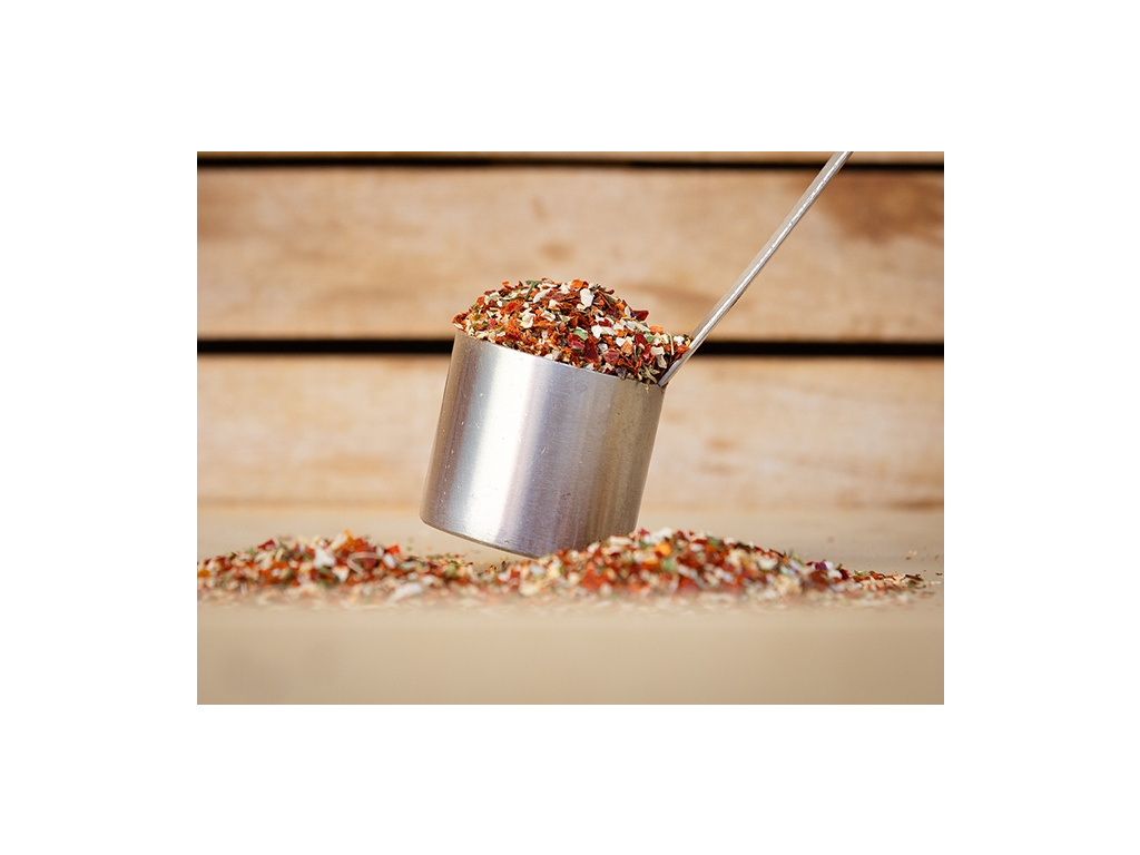 Zloženie: Cibuľa, chillies, čierne korenie, paprikové vločky, petržlenová vňať, ligurček, oregano.