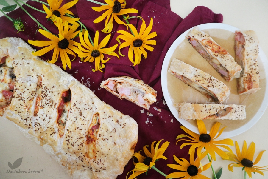 Slaný závin s cibulí, šunkou a sýrem