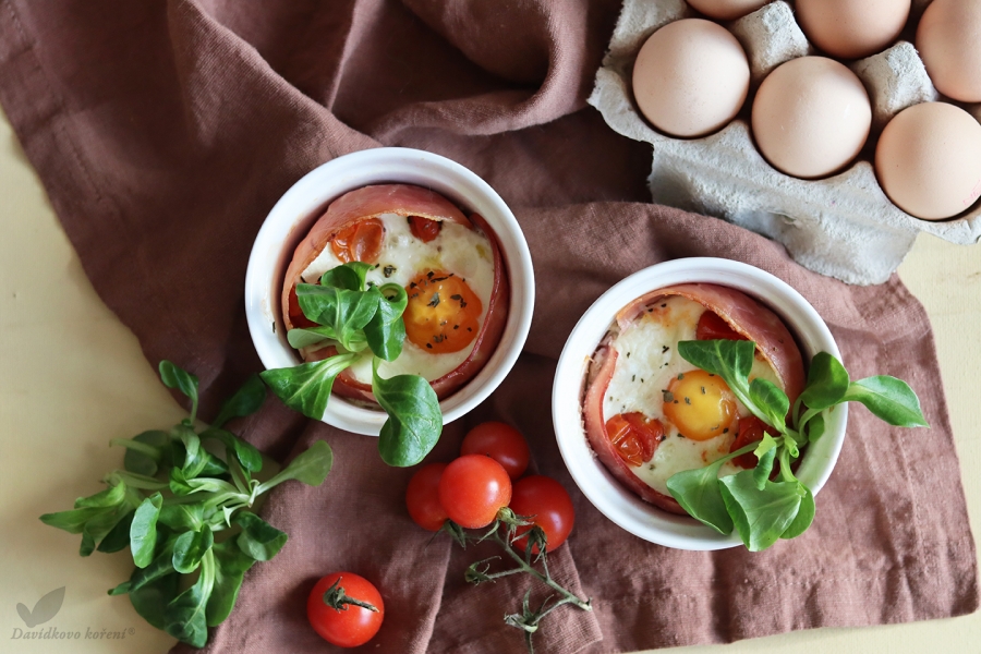 4Vejce rozdělte na žloutky a bílky zvlášť. Bílky prošlehejte se smetanou, solí a pepřem, nalijte na sýr a ozdobte žloutkem. Nakonec do kalíšku dejte i upečená rajčata. Můžete celek ještě posypat bazalkou. Dejte zapéct tak dlouho, podle toho, jak moc vajíčka chcete mít udělaná: naměkko stačí 10 minut, na hlinilučku 15 minut a natvrdo 20 minut.