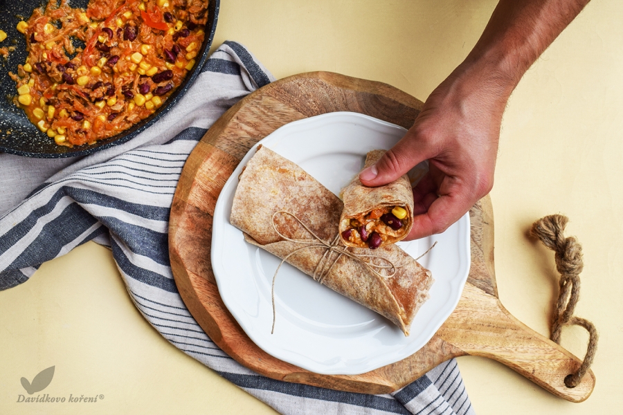 2Tortillu dejte na horkou pánev a nechte minutku z obou stran prohřát.