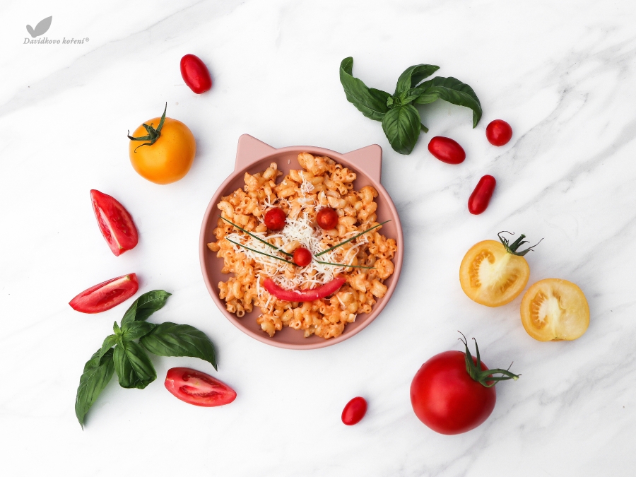 V širšej panvici nechajte zredukovať smotanu na šľahanie alebo kokosovú smotanu. Pridajte 2 lyžičky zmesi Vege – rajčátka, dve hrsti uvarených cestovín a dobre premiešajte. Verte, že sa snáď nenájde dieťa, ktoré by to nezjedlo a nechcelo pridať. A vy máte obed hotový za 15 minút.